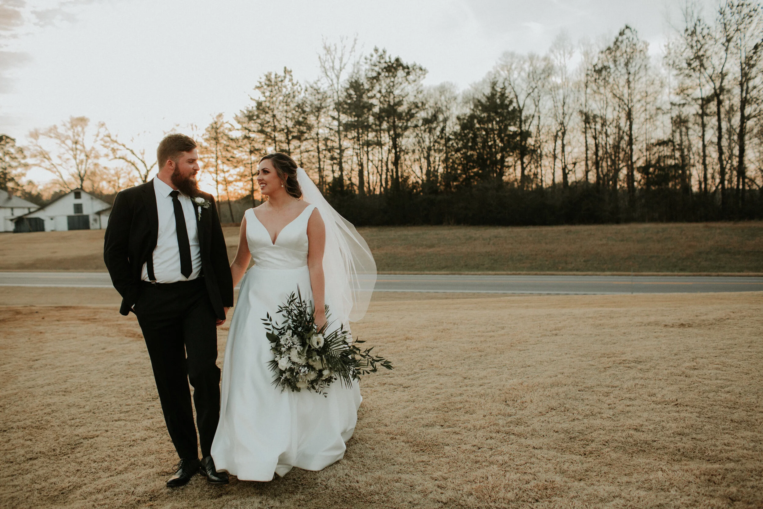 LOCATED IN THE MOUNTAINS, J & D FARMS IS JUST OUTSIDE OF SOUTHSIDE, ALABAMA. J&D FARMS IS A WELL KNOWN VENUE IN ALABAMA, AND FOR GOOD REASON. IT HAS WON MANY AWARDS AND BEEN FEATURED IN SEVERAL MAGAZINES. THE VIEWS ARE BREATHTAKING AT EVERY HOUR OF THE DAY. THERE ARE MANY LOCATIONS ON THE PROPERTY THAT YOU CAN UTILIZE THROUGHOUT YOUR DAY WHETHER IT BE THE DUTCH BARN, WHITE STABLES, THE GORGEOUS HOME LOCATED AT THE TOP OF THE HILL, OR THE ORCHARD. THE POSSIBILITIES ARE TRULY ENDLESS WITH THIS ONE OF A KIND VENUE. YOU KNOW WHAT IS EVEN BETTER, THESE PROPERTIES OFFER HEAT AND AC TO KEEP YOU AND YOUR GUESTS COMFORTABLE. THE COUPLE ENJOYED A DAY WITH THEIR FAVORITE PEOPLE AS THE GIRLS GOT READY IN THE HOUSE AND THE GUYS GOT READY AND PLAYED A LITTLE POOL IN THE GROOM’S HOUSE. THIS BEAUTIFUL COUPLE SAID “I DO” IN FRONT OF THE NEWLY ADDED STONE FIREPLACE. I’M TELLING YOU, SO MANY OPTIONS! THEY THEN DANCED THE NIGHT AWAY WITH ALL OF THEIR GUESTS INSIDE THE ORIGINAL DUTCH BARN. THE OWNERS OF THIS VENUE ARE THE SWEETEST AND MAKE SURE THAT EACH COUPLE TRULY FEELS SPECIAL ON THEIR DAY.