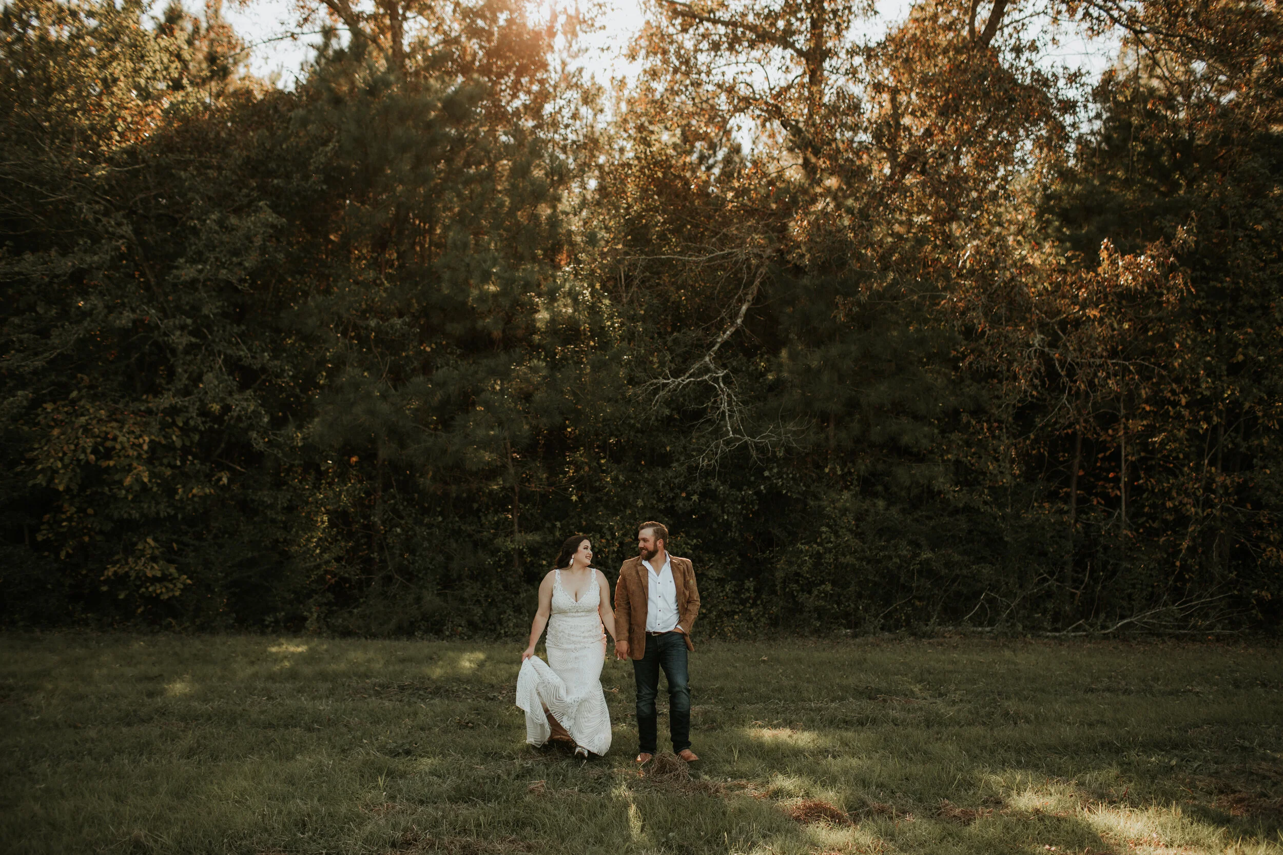 THE SUNSET IS A BEAUTIFUL BARN VENUE THAT OVERLOOKS ROLLING HILLS OF BERMUDA GRASS, DIFFERENT CROPS, AND VARYING FLORALS. THE PROPERTY ALSO INCLUDES A LARGE POND THAT YOU CAN USE AS THE BACKDROP FOR YOUR WEDDING VOWS. INSIDE THE BARN YOU WILL FIND AN OPEN KITCHEN AREA FOR YOUR VENDORS TO USE AS WELL AS THE BRIDAL SUITE, GROOM’S ROOM, AND RESTROOMS. THERE ARE SO MANY THINGS INCLUDED WHEN RENTING THE SUNSET, SUCH AS TABLES AND CHAIRS FOR UP TO 300 GUESTS, USE OF THE VENUE FOR ENGAGEMENT PICTURES, AND A WIDE ARRAY OF ANTIQUE DECOR TO HELP SPICE UP YOUR WEDDING DAY. THE LONGSHORES HAD A PICTURE PERFECT SUNSET WEDDING OUTSIDE WITH THEIR GUESTS SITTING IN WHITE CHURCH PEWS. THEY THEN DANCED THE NIGHT AWAY INSIDE THE BARN.