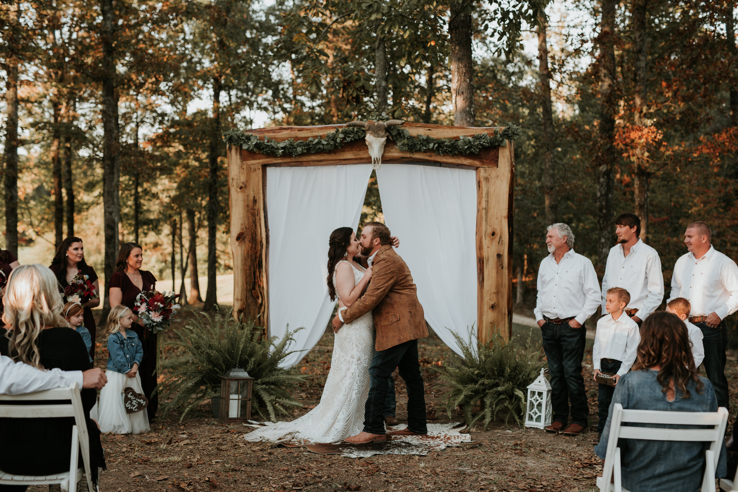 OTTER CREEK IS A WEDDING AND CORPORATE EVENT VENUE LOCATED IN OHATCHEE, ALABAMA. THIS VENUE IS SO PERFECT INSIDE AND OUT AND HAS A WIDE VARIETY OF OFFERINGS FROM WINGSHOOTING, HUNTING, A DISTILLERY, DOG KENNELS, AND OF COURSE ITS GORGEOUS SPACE TO HOST WEDDING AND EVENTS IN THE MAIN LODGE. MR. AND MRS. LUCAS DIDN’T LET THE RAIN STOP THEM FROM CELEBRATING THEIR WEDDING DAY. THEIR ORIGINAL PLAN WAS TO HAVE THEIR CEREMONY OUTSIDE UNDER THE PAVILION, BUT DUE TO THE RAIN, EVERYTHING WAS MOVED INSIDE AND IT WENT OFF WITHOUT A HITCH. THE AMAZING PEOPLE AT OTTER CREEK HELPED US ORGANIZE AND MOVE EVERYTHING AT JUST THE RIGHT TIMES AND EVERYTHING STILL FLOWED PERFECTLY. YOU WOULD HAVE NEVER KNOWN IT WAS PLAN B.
